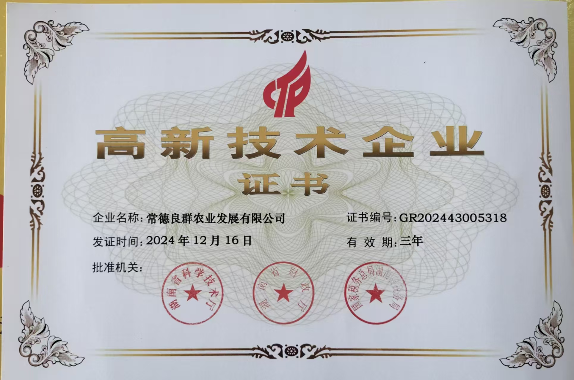 高新技术企业证书